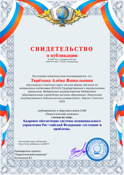 Кадровое обеспечение системы муниципального управления Рос¬сийской Федерации: состояние и проблемы.
