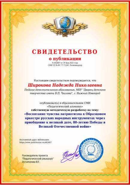 «Воспитание чувства патриотизма в Образцовом оркестре русских народных инструментах через приобщение к великой дате, 80-летию Победы в Великой Отечественной войне»