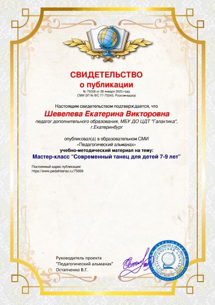 Мастер-класс “Современный танец для детей 7-9 лет”