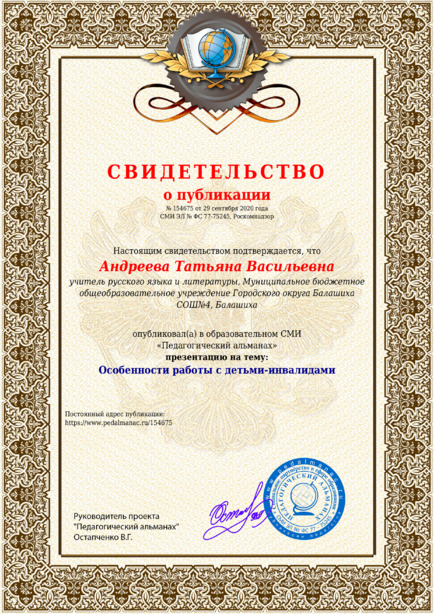 Особенности работы с детьми-инвалидами