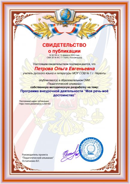 Программа внеурочной деятельности “Моя речь-моё достоинство”