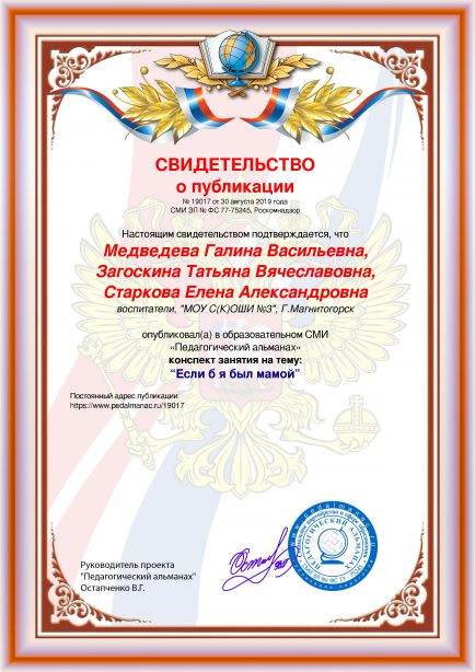 - Медведева Галина Васильевна, Загоскина Татьяна Вячеславовна, Старкова Елена Александровна