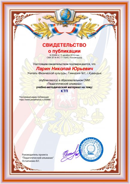 После оплаты Вам моментально предоставляется именное «Свидетельство о публикации» и «Справка о публикации материала в СМИ»В соответствии с пп. 36, 37 Приказа Минобрнауки РФ №276 «Об утверждении Порядка проведения аттестации педагогических работников» является подтверждением транслирования в педагогических коллективах опыта практических результатов своей профессиональной деятельности, в том числе экспериментальной и инновационной. установленного образца в печатном качестве, которые Вы можете приложить к портфолио и предъявить при прохождении аттестации.