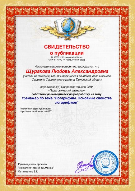 После оплаты Вам моментально предоставляется именное «Свидетельство о публикации» и «Справка о публикации материала в СМИ»В соответствии с пп. 36, 37 Приказа Минобрнауки РФ №276 «Об утверждении Порядка проведения аттестации педагогических работников» является подтверждением транслирования в педагогических коллективах опыта практических результатов своей профессиональной деятельности, в том числе экспериментальной и инновационной. установленного образца в печатном качестве, которые Вы можете приложить к портфолио и предъявить при прохождении аттестации.